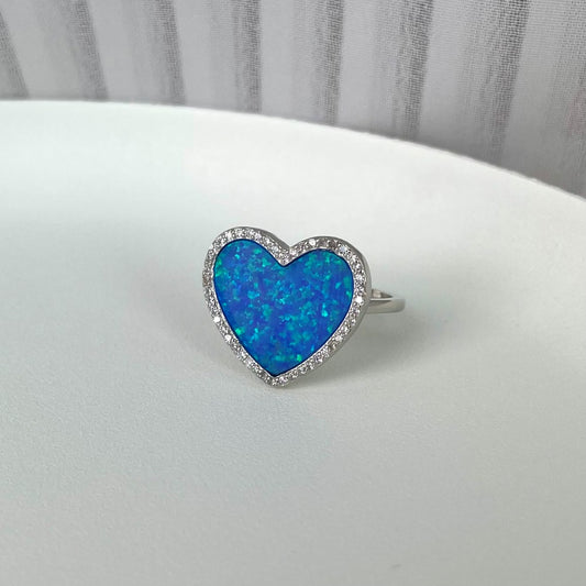 Anillo Corazón tipo Opalo Azul